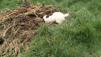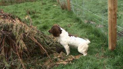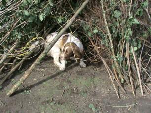 The enclosed pen has several piles of brashings and natural cover for the pheasants, partridge and rabbits to take cover. In here, there is plenty of scent to help 'gee up' any of those dogs which may need it and to show the other dogs that, unless told otherwise, they must sit steady, regardless of what runs or flies past them.